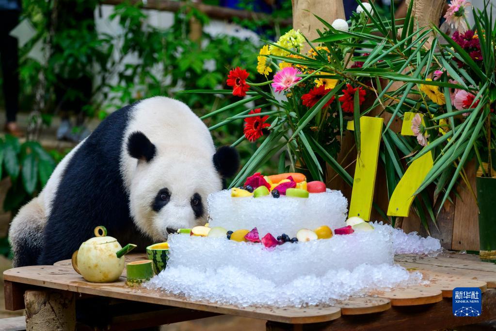 在馬來(lái)西亞國家動(dòng)物園大熊貓保護中心內,中國旅馬大熊貓夫婦“興興”和“靚靚”23日迎來(lái)了17歲生日。