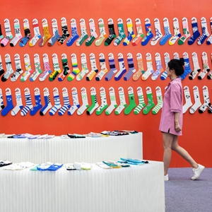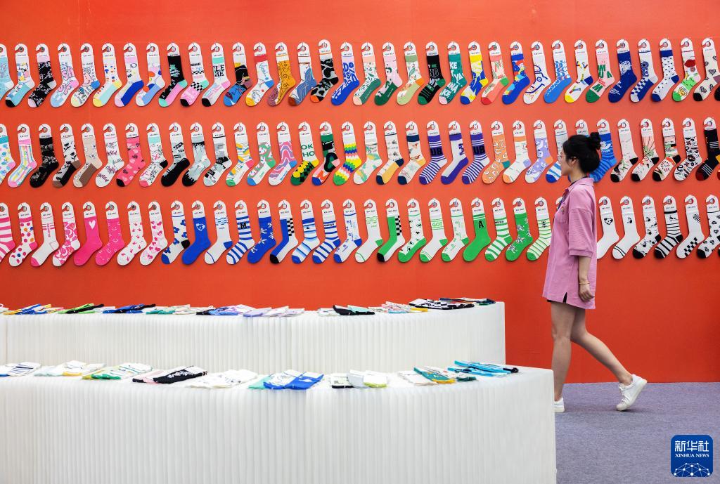 8月23日,一名女子在襪業(yè)博覽會(huì )上參觀(guān)。