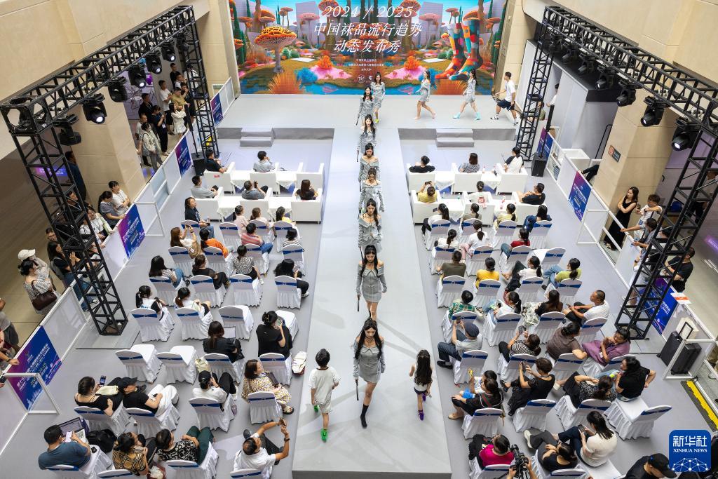 8月23日,模特在襪品流行趨勢發(fā)布會(huì )上展示產(chǎn)品。