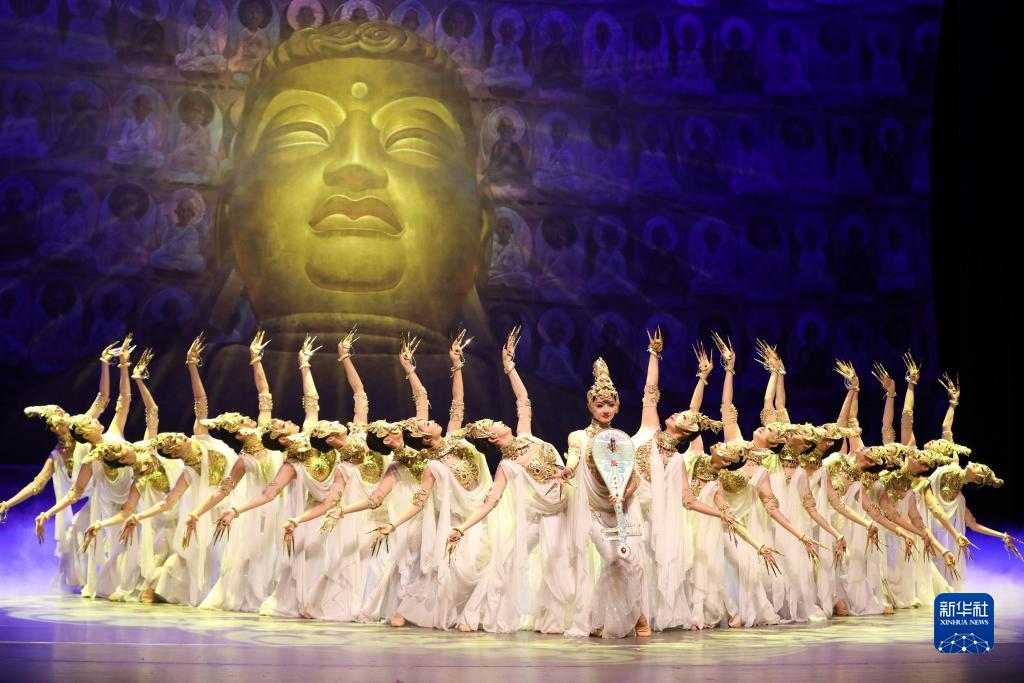 近日,中國經(jīng)典舞劇《絲路花雨》在甘肅省蘭州市的甘肅黃河劇院常態(tài)化駐場(chǎng)演出,甘肅省歌舞劇院的演員們演繹了優(yōu)美動(dòng)人的敦煌壁畫(huà)舞姿。