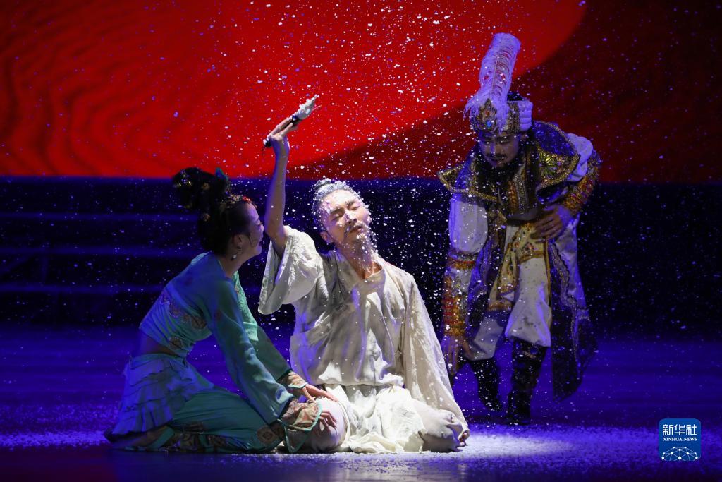 近日,中國經(jīng)典舞劇《絲路花雨》在甘肅省蘭州市的甘肅黃河劇院常態(tài)化駐場(chǎng)演出,甘肅省歌舞劇院的演員們演繹了優(yōu)美動(dòng)人的敦煌壁畫(huà)舞姿。