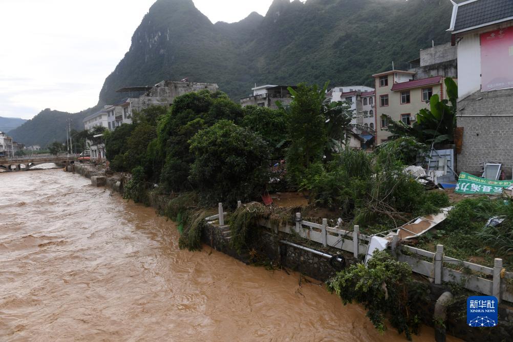 這是廣西百色市凌云縣下甲鎮暴漲的河流(8月24日攝)。