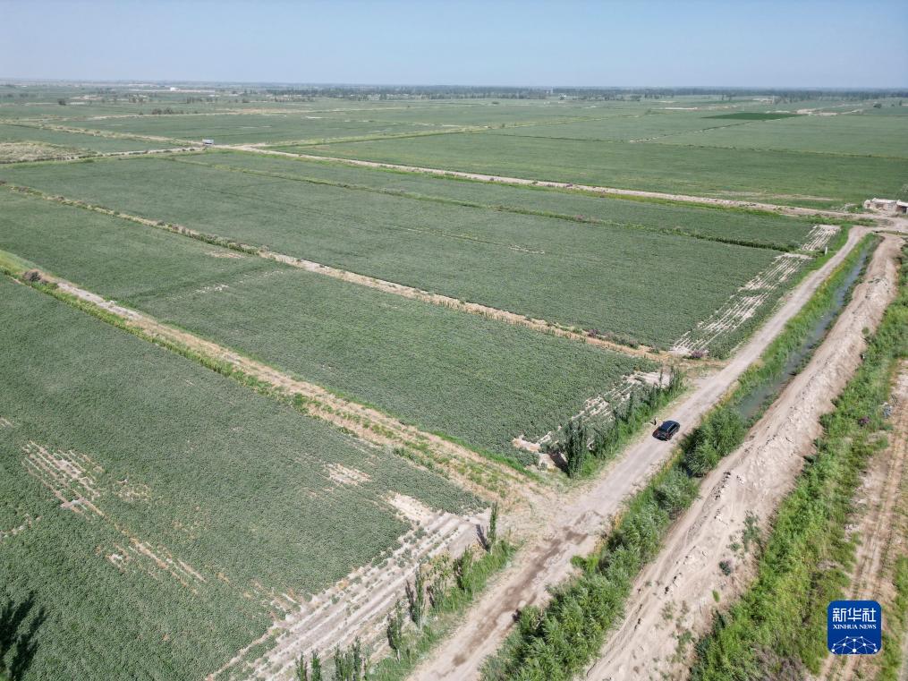 8月17日,爾肯·熱衣木駕駛自己的新買(mǎi)的車(chē)行駛在棉田間(無(wú)人機照片)。