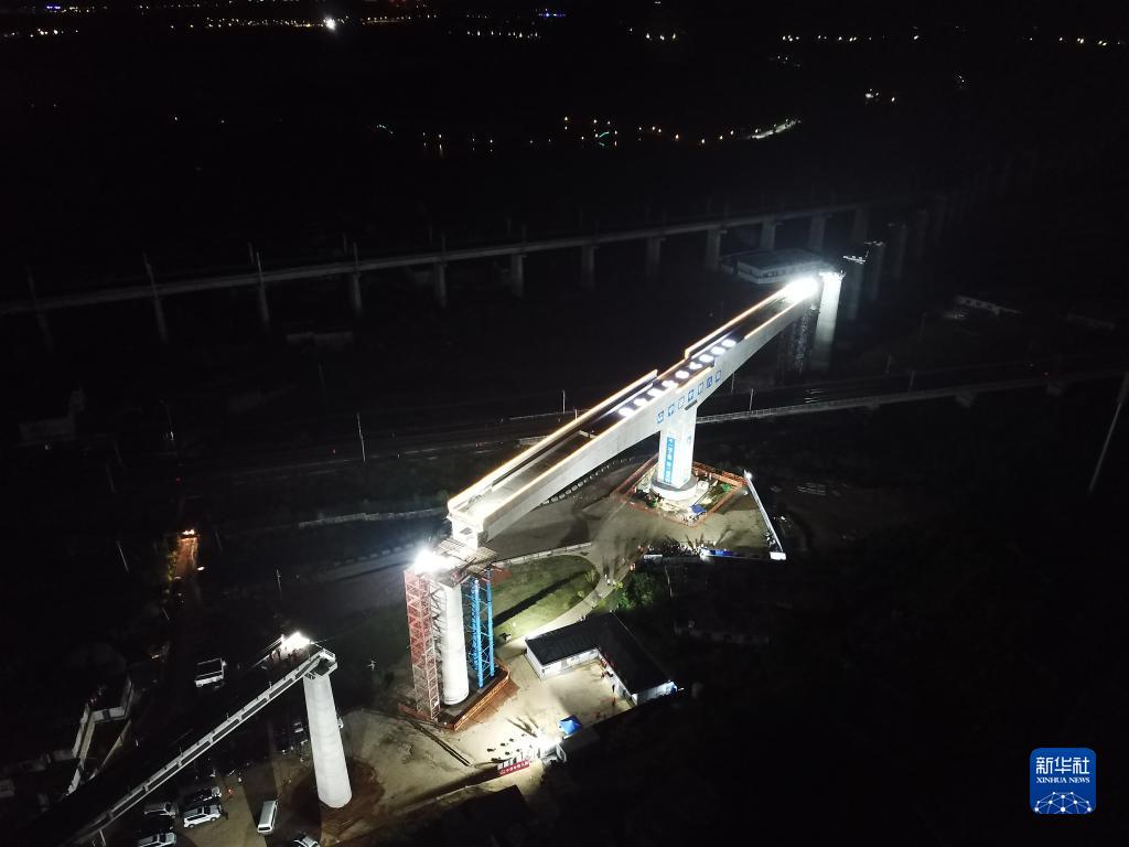 貴南高鐵引入貴陽(yáng)樞紐鐵路尖坡寨特大橋轉體成功