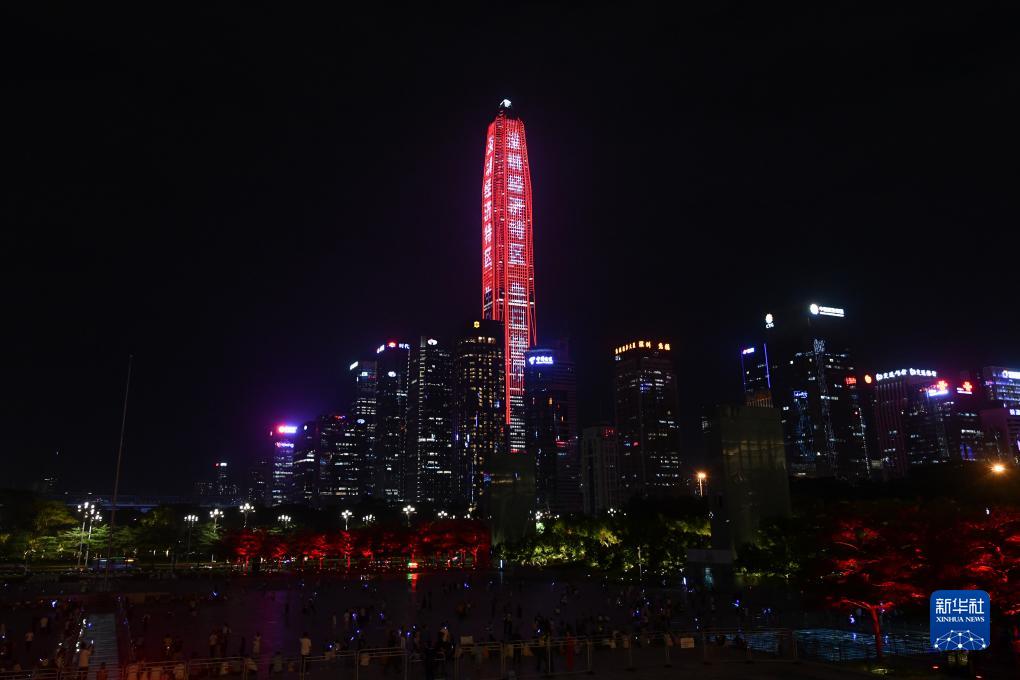 8月25日晚,深圳市中心區地標建筑平安金融中心大廈打出“深圳經(jīng)濟特區 生日快樂(lè )”。新華社記者 梁旭 攝