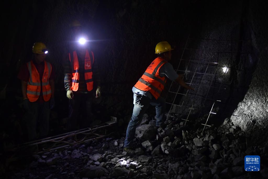8月25日,中鐵十九局施工人員在沈白高鐵新賓隧道內施工。