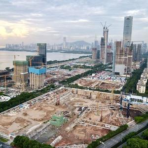 深圳灣超級總部基地建設現場(chǎng)(8月26日攝)。