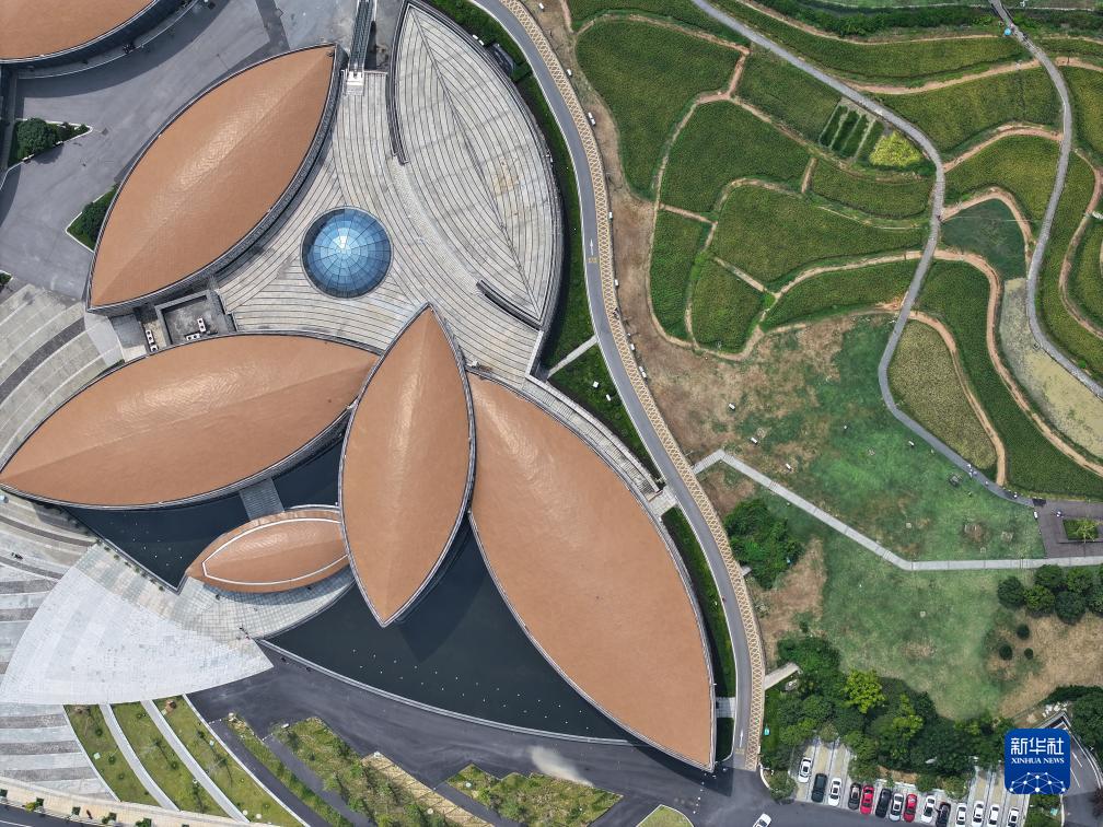 這是8月26日拍攝的長(cháng)沙市芙蓉區的隆平水稻博物館及旁邊的稻田(無(wú)人機照片)。