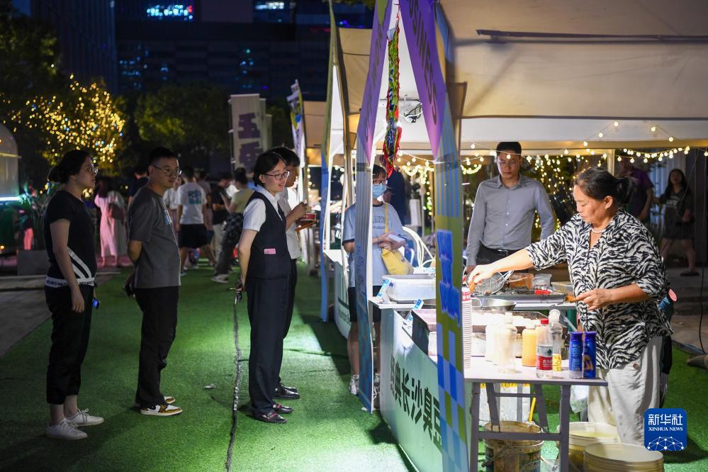 夜幕降臨,華燈初上,南京市建鄴區新城科技園內燈火璀璨、人潮涌動(dòng)。建鄴區西城·夜未央街區“下班節”正在這里舉行,市民游客們品嘗特色美食,欣賞勁歌熱舞,親子互動(dòng)娛樂(lè ),運動(dòng)打卡健身,享受休閑時(shí)光。