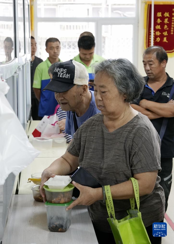 8月26日,十里堡社區的老年人在老年餐廳購買(mǎi)午飯。