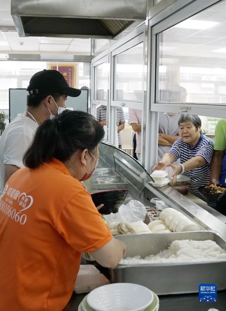 8月26日,十里堡社區的老年人在老年餐廳購買(mǎi)午飯。
