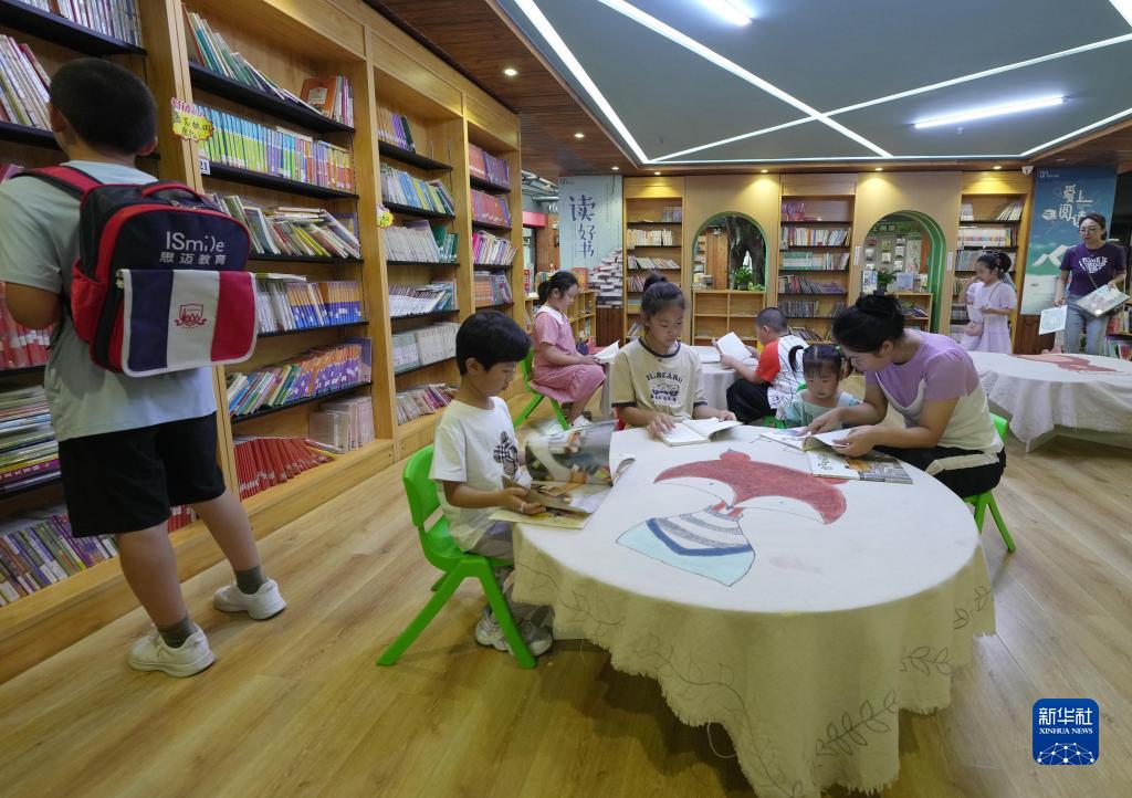 8月26日,家長(cháng)帶著(zhù)孩子在秦皇島市海港區青年書(shū)店閱讀區閱讀。