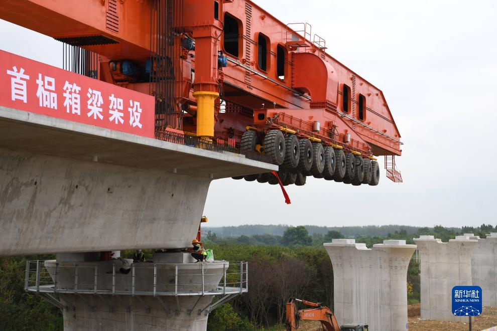 這是中國鐵建大橋局新建滬寧合高鐵全線(xiàn)首榀箱梁架設現場(chǎng)(8月27日攝)。