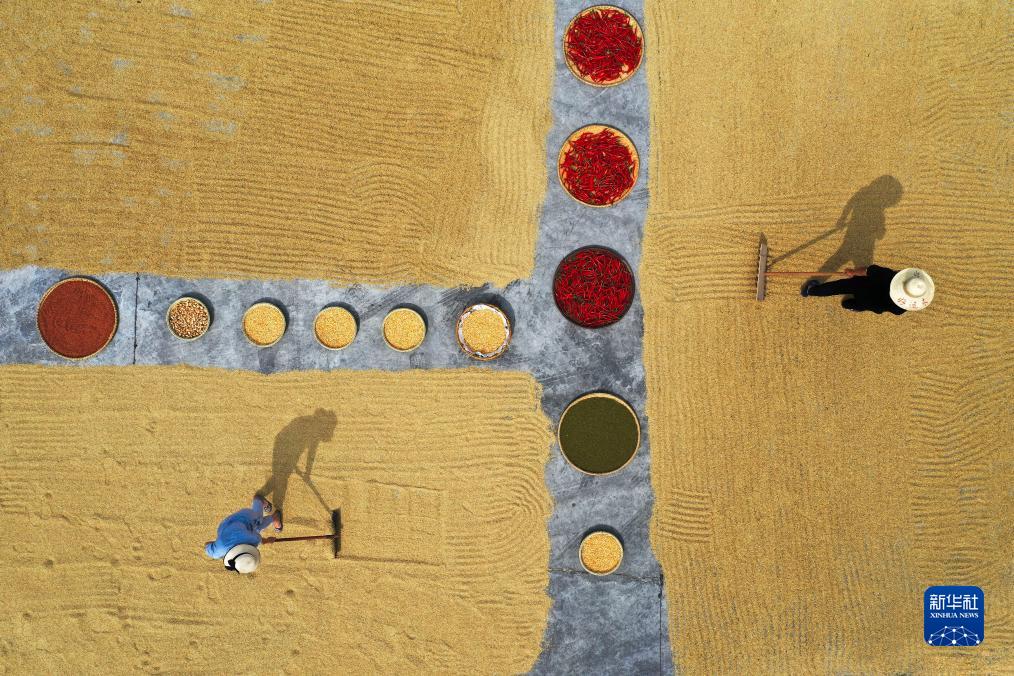 初秋時(shí)節,各地農民利用晴好天氣忙著(zhù)收獲稻谷等,到處是一派繁忙的景象。