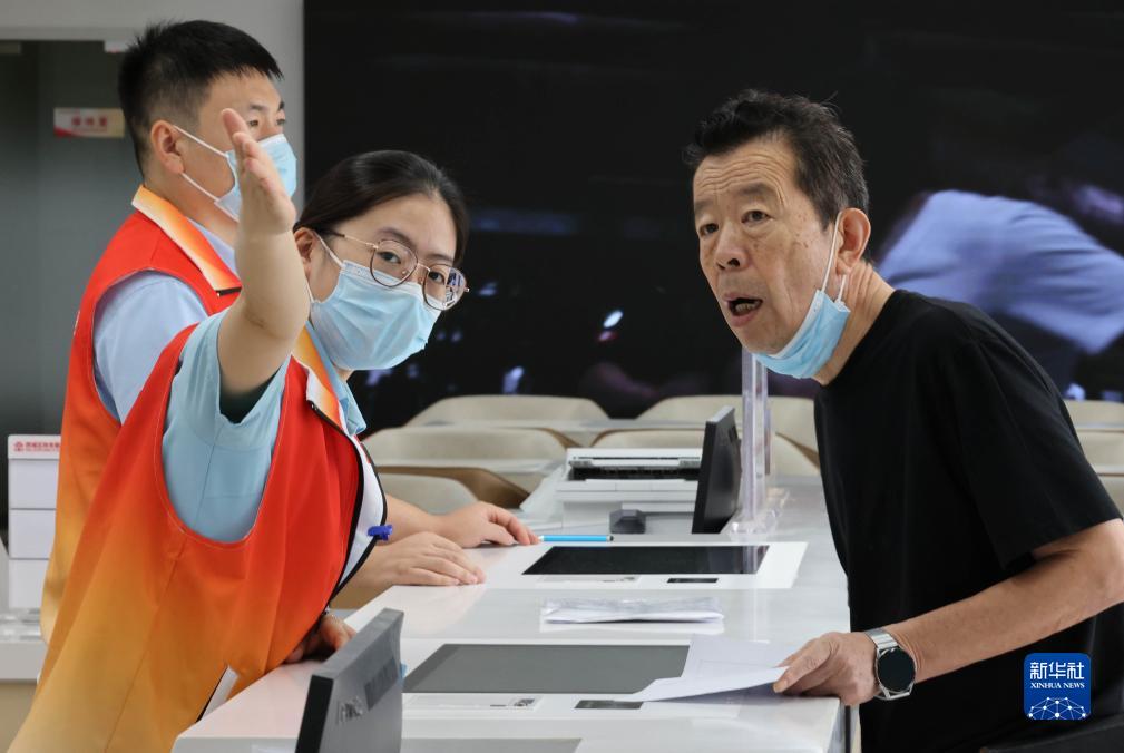 8月25日,在北京市公安局西城分局出入境接待大廳,工作人員在引導一位男士去相應的辦理區域。