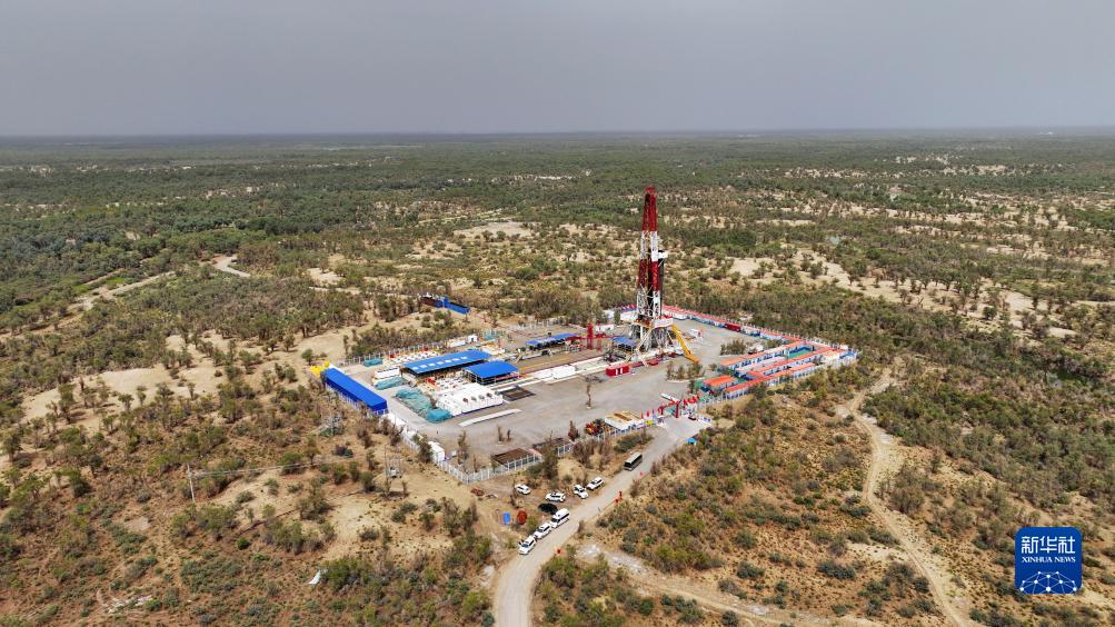 8月21日拍攝的中國石化塔里木盆地“深地工程”躍進(jìn)3-3XC油氣井。該井設計井深9472米,截至8月28日,鉆探深度已達8471米(無(wú)人機照片)。