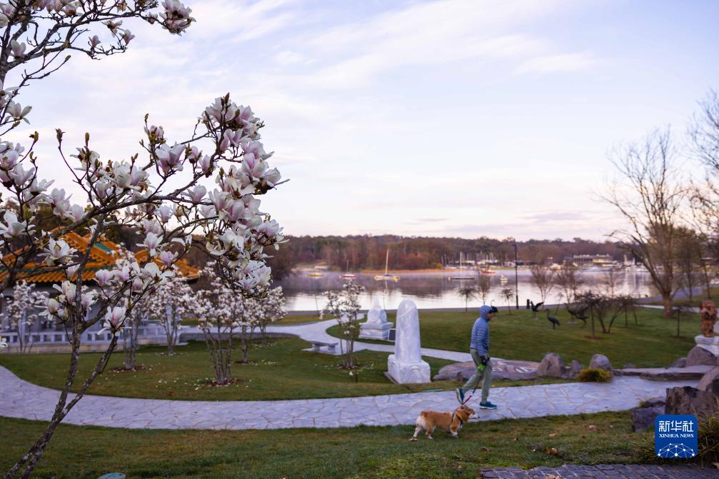 8月30日,游客牽著(zhù)寵物狗在澳大利亞堪培拉的北京花園散步。