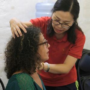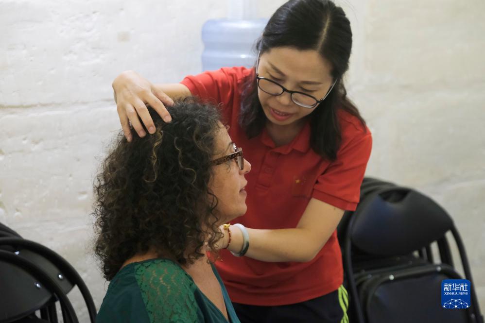 8月28日,在馬耳他榟橔市,中國援馬耳他醫療隊隊長(cháng)董曉燕為一名婦女提供義診服務(wù)。