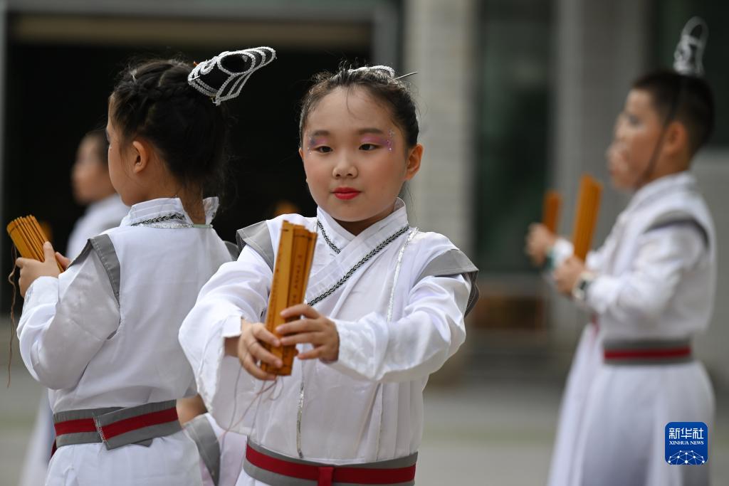 8月30日,在安徽省合肥市屯溪路小學(xué),學(xué)生表演誦讀《千字文》,體驗傳統文化,迎接新學(xué)期。