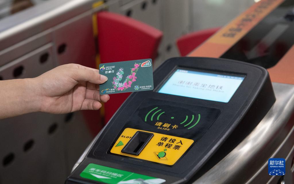8月30日,在深圳福田站地鐵閘機出口,用戶(hù)持深港互通行卡準備刷卡。