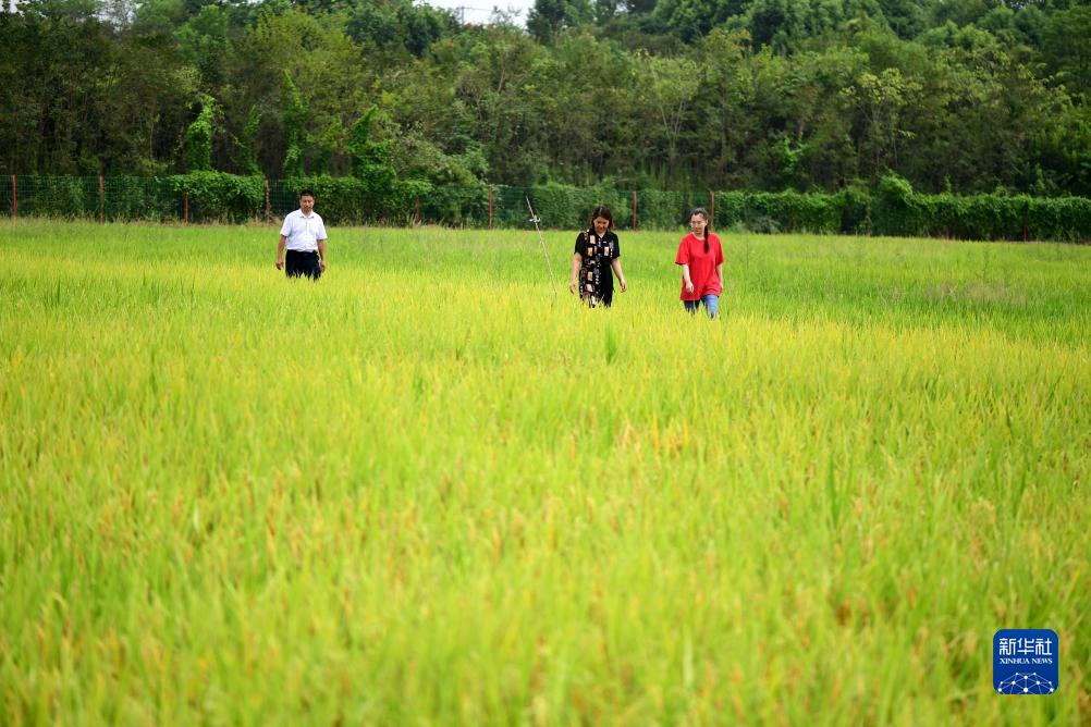 8月30日,潘雅潔(右一)和父母行走在肥西縣紫蓬鎮的稻田里。