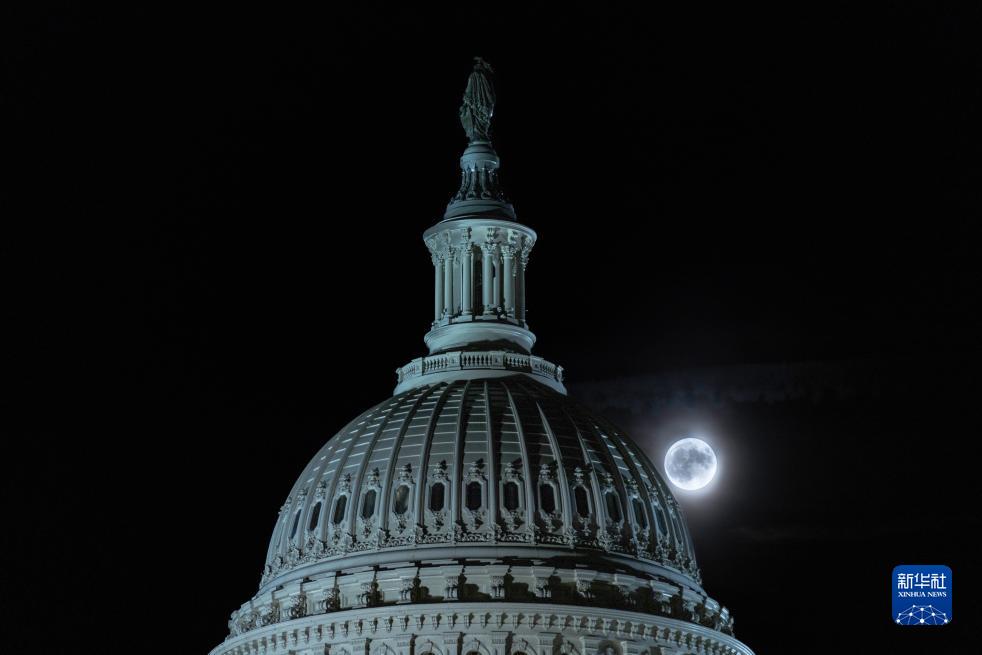 8月30日,“超級月亮”在美國華盛頓國會(huì )上空升起。
