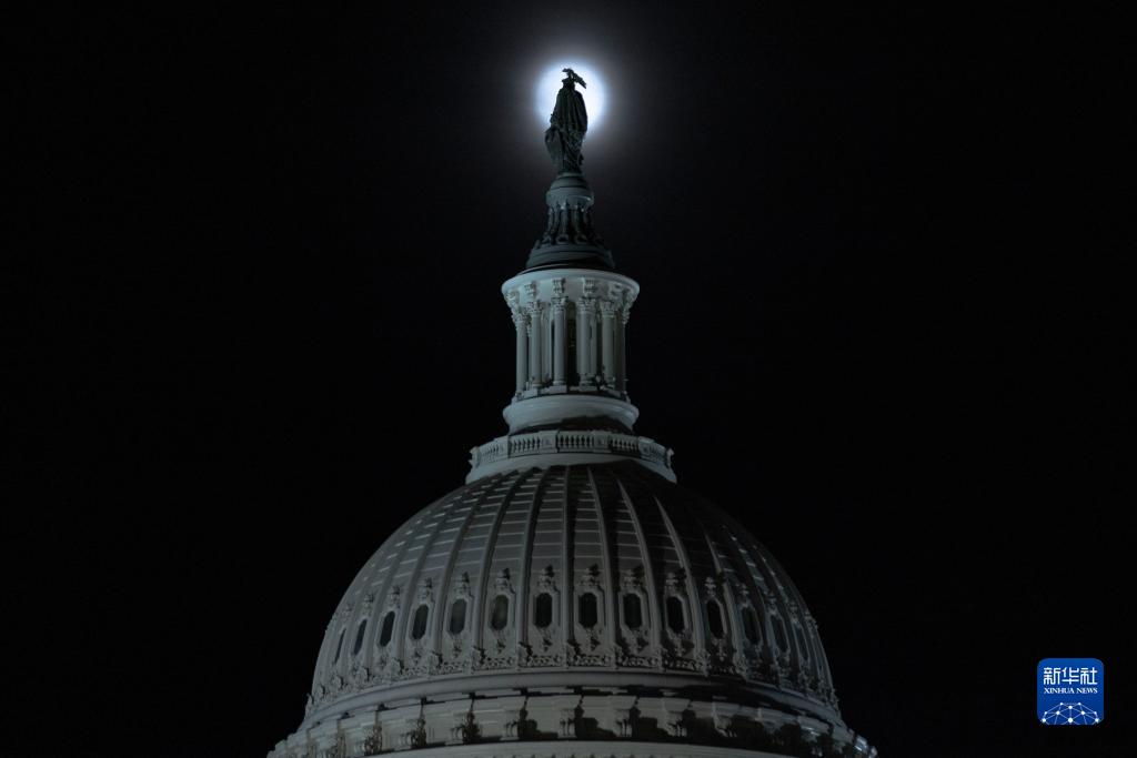 8月30日,“超級月亮”在美國華盛頓國會(huì )上空升起。