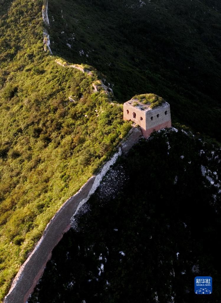 落日余暉中的河北唐山遷安市徐流口長(cháng)城(8月29日攝,無(wú)人機照片)。
