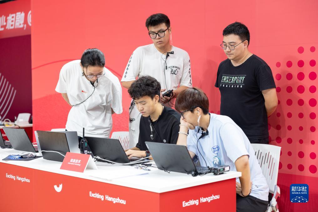 8月30日,工作人員在浙江省湖州市德清體育中心體育館根據預案進(jìn)行競賽技術(shù)演練。