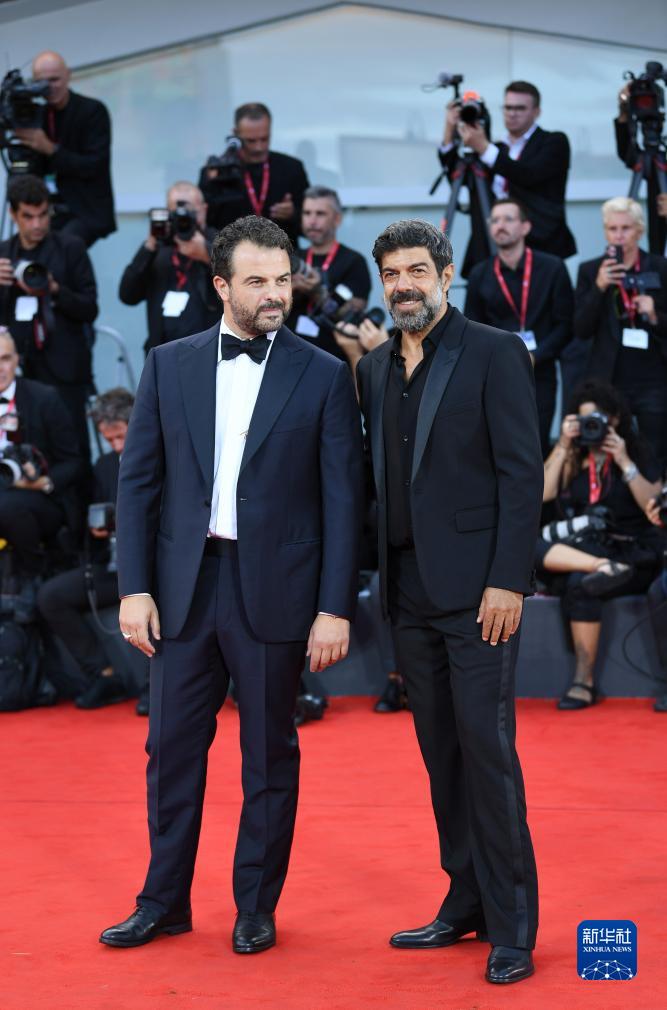8月30日,在意大利威尼斯,開(kāi)幕影片《指揮官》導演愛(ài)德華多·德·安杰利斯(左)和演員法維諾亮相開(kāi)幕式紅毯。