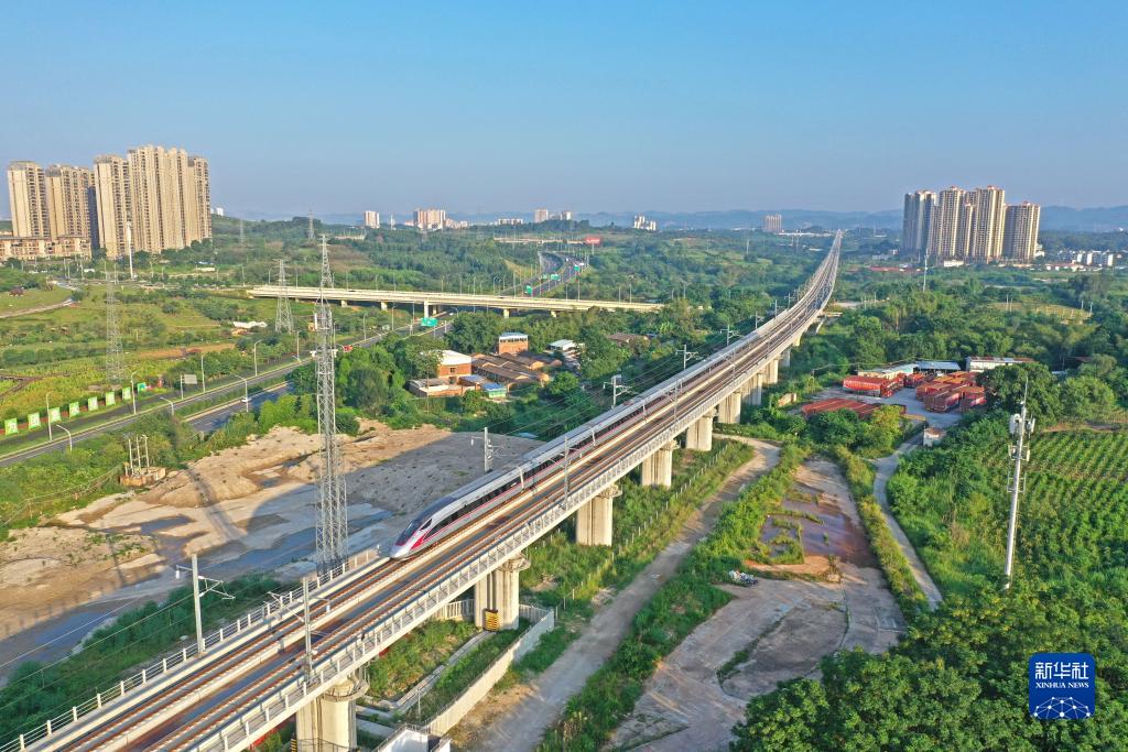 這是8月31日在廣西南寧市拍攝的由南寧東開(kāi)往貴陽(yáng)北的G4308次列車(chē)(無(wú)人機照片)。