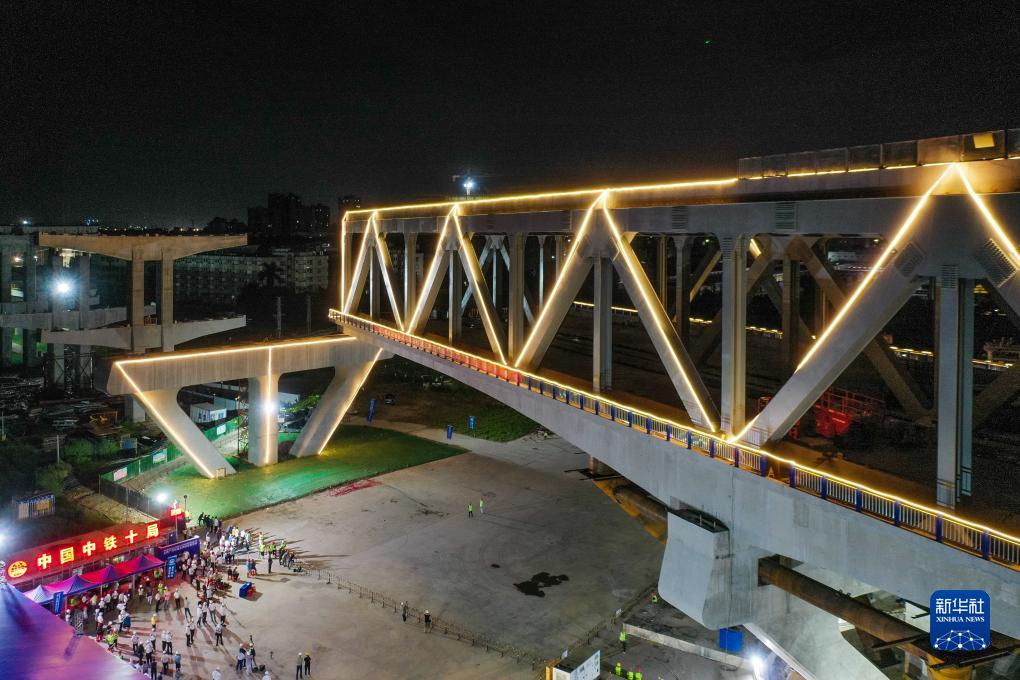 當日凌晨,中鐵十局承建的莞(東莞)番(番禺)高速上跨廣深鐵路主橋完成逆時(shí)針81.1°轉體,填補了國內雙層公路鋼砼結合橋轉體施工跨越運營(yíng)鐵路的空白。