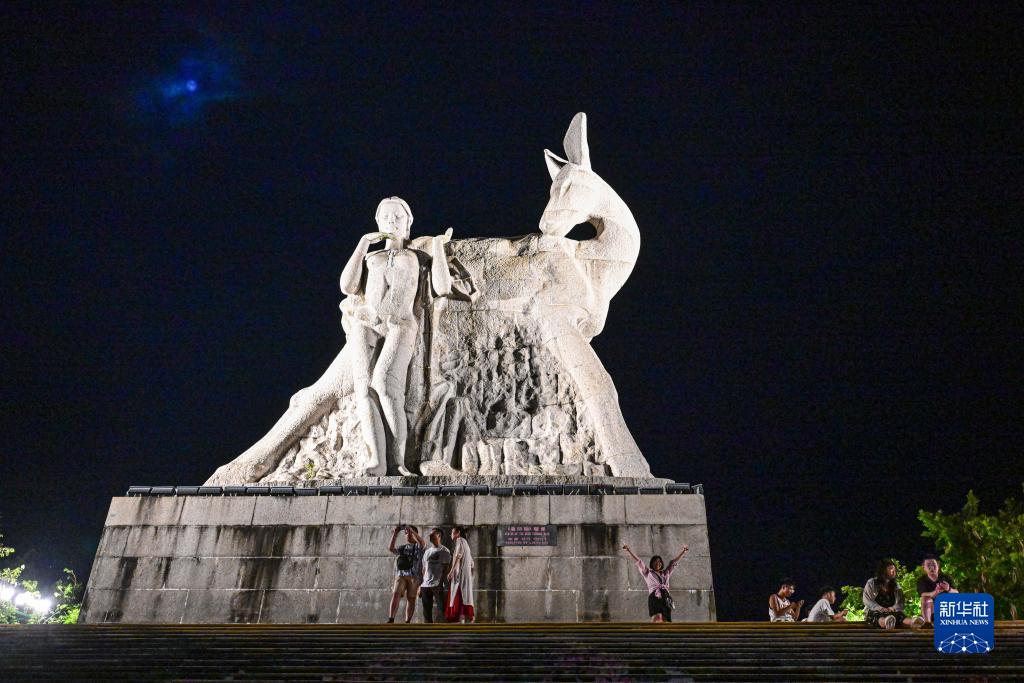 8月29日,游客在鹿回頭風(fēng)景區標志性景點(diǎn)鹿回頭雕像前游玩。