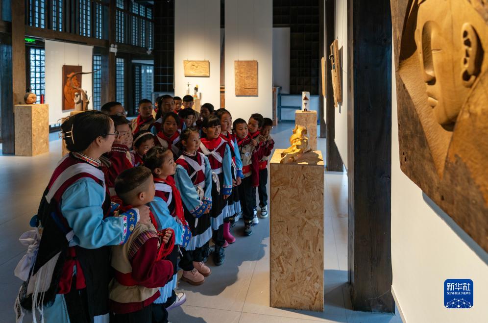 玉湖完小的師生在麗江市玉龍納西族自治縣白沙鎮玉湖村研學(xué)基地參觀(guān)(8月29日攝)。