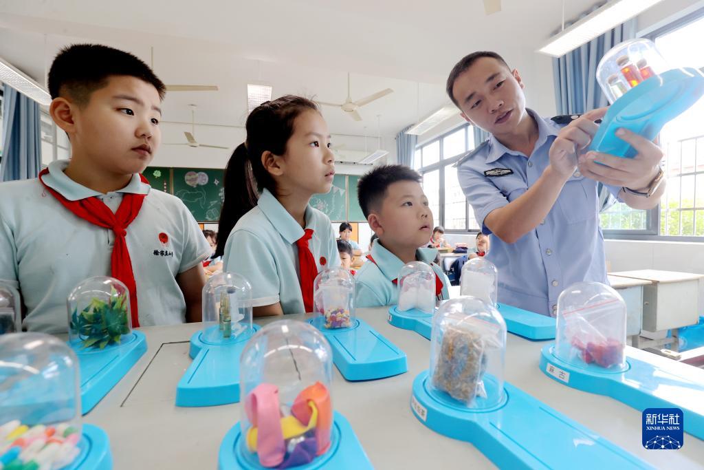 9月1日,浙江省湖州市德清縣公安局禹越派出所民警在德清縣禹越鎮徐家莊中心小學(xué)為學(xué)生講解毒品危害。