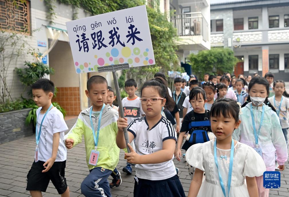9月1日,陜西省西安市新城區后宰門(mén)小學(xué)一年級的學(xué)生在熟悉校園。