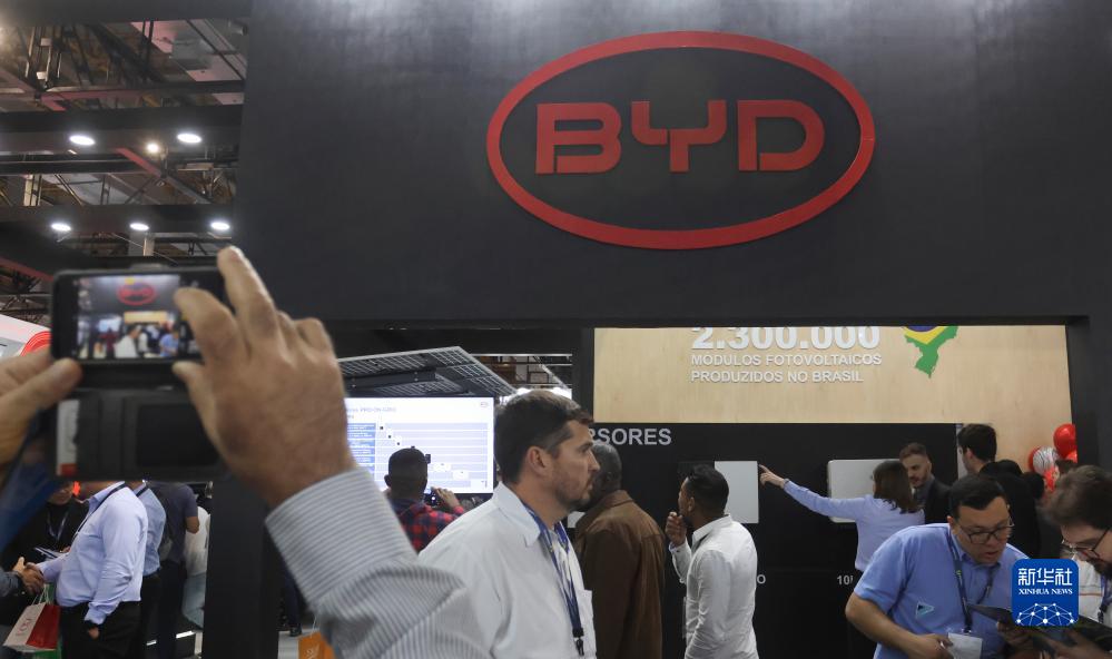 8月30日,在巴西圣保羅舉行的第十屆南美國際太陽(yáng)能展上,一名參觀(guān)者拍攝比亞迪展臺。