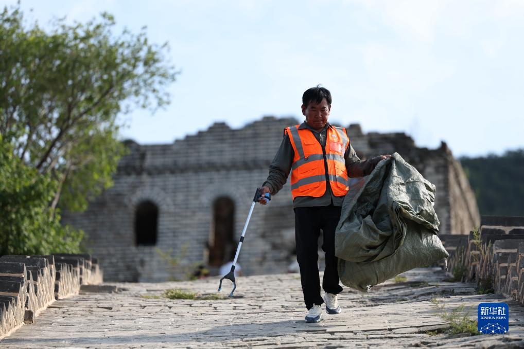 8月30日,衡丙三在長(cháng)城上撿拾垃圾。