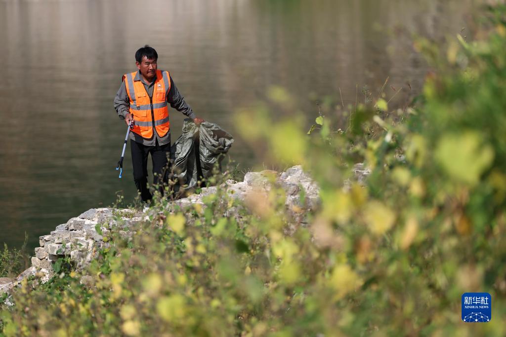 8月30日,衡丙三在長(cháng)城上撿拾垃圾。