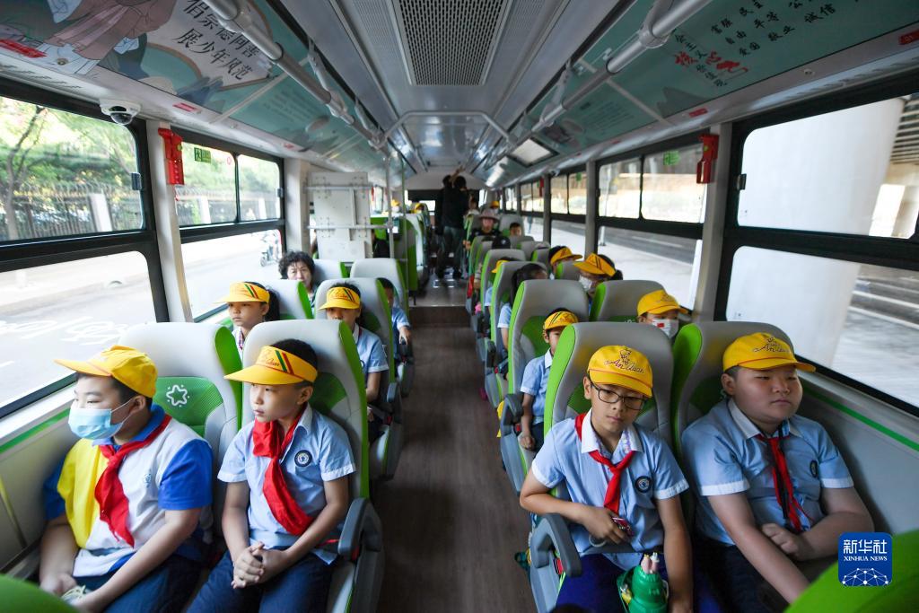 9月1日,許多北京市豐臺區第一小學(xué)的學(xué)生乘坐通學(xué)公交車(chē)上學(xué)。
