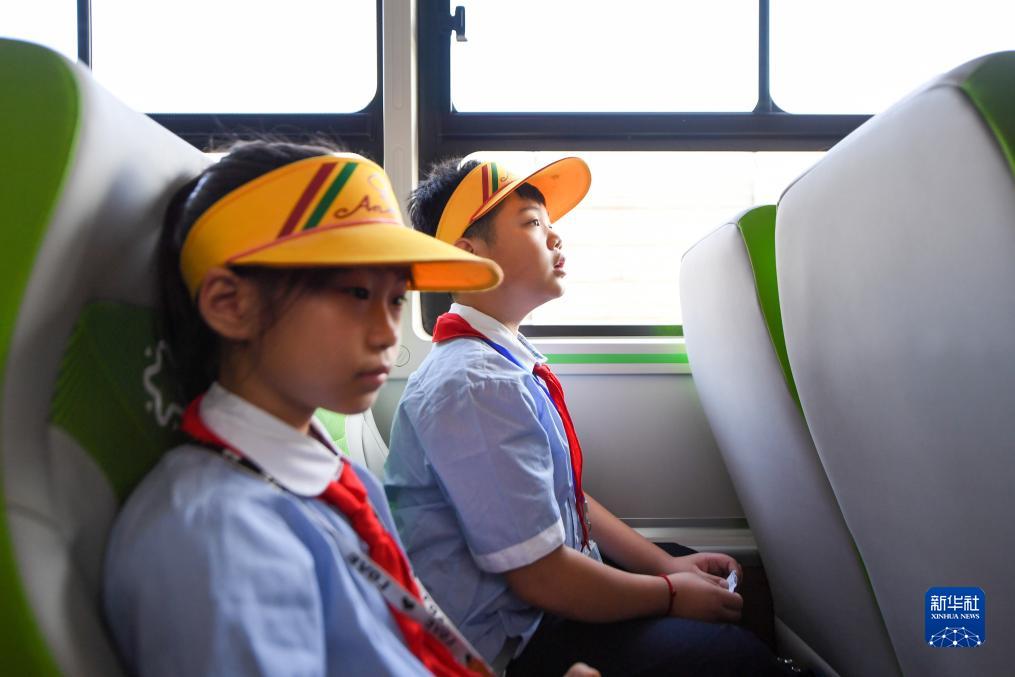 9月1日,兩位北京市豐臺區第一小學(xué)的學(xué)生乘坐通學(xué)公交車(chē)上學(xué)。