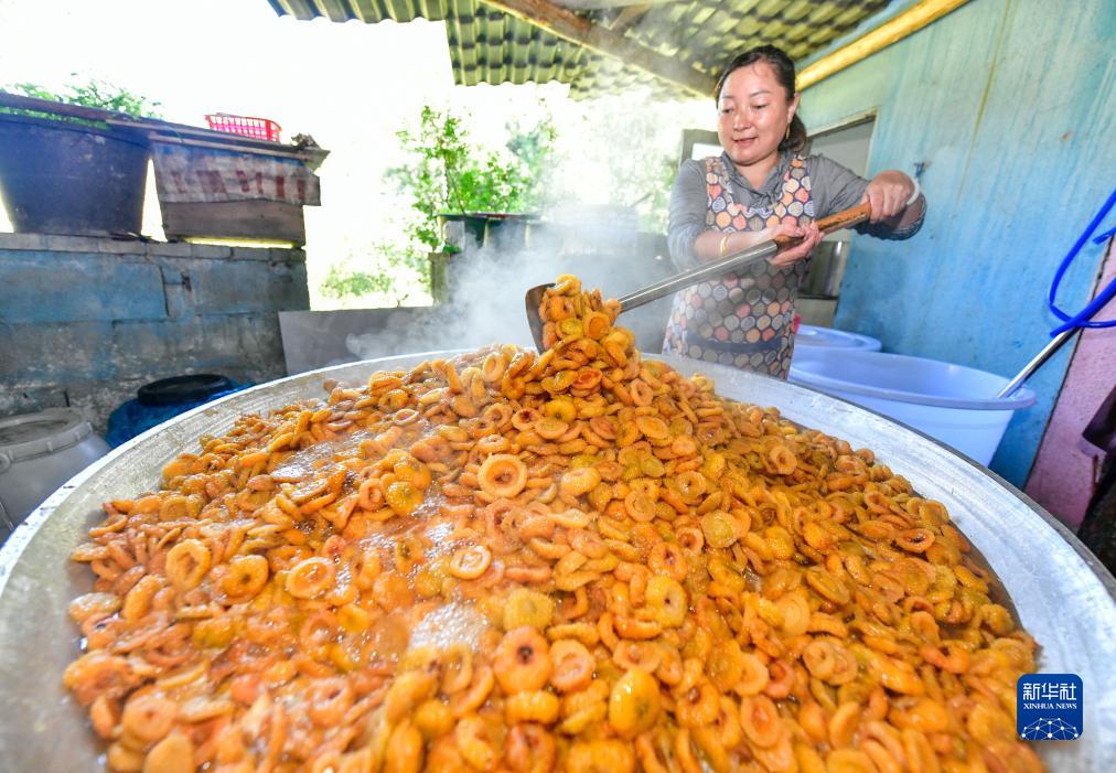 9月1日,村民在貴州省龍里縣谷腳鎮茶香村一家刺梨專(zhuān)業(yè)合作社熬制刺梨果脯。