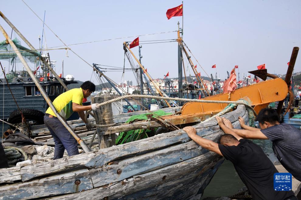 9月1日,在山東省青島西海岸新區的積米崖中心漁港,漁民解纜起航。