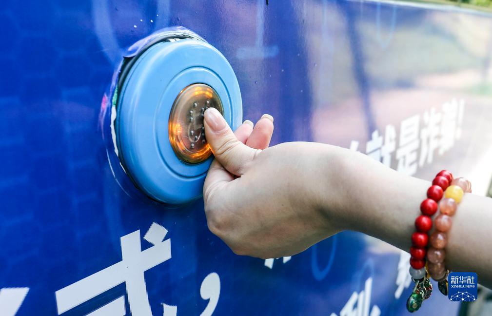 9月1日,在江蘇蘇州的勞動(dòng)路實(shí)驗小學(xué)公交車(chē)站,乘坐輪椅的乘客在車(chē)外按下無(wú)障礙公交車(chē)外帶有盲文的按鈕準備乘車(chē)。