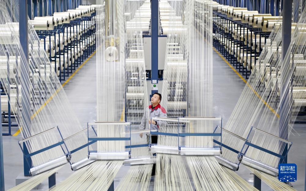 在中國建材集團西寧萬(wàn)噸碳纖維生產(chǎn)基地,工作人員整理碳纖維原絲(8月27日攝)。