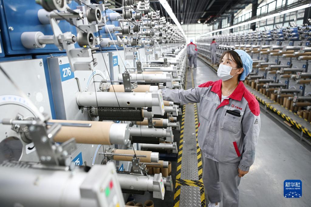 在中國建材集團西寧萬(wàn)噸碳纖維生產(chǎn)基地,工作人員檢查碳纖維生產(chǎn)線(xiàn)運行情況(8月27日攝)。