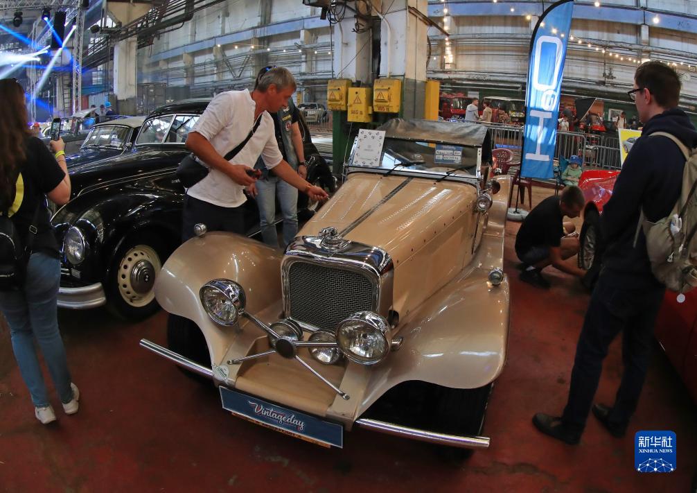 9月2日,人們在白俄羅斯明斯克參觀(guān)老爺車(chē)。