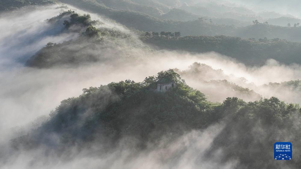 這是9月2日拍攝的河北省遵化市小廠(chǎng)鄉洪山口長(cháng)城晨景(無(wú)人機照片)。