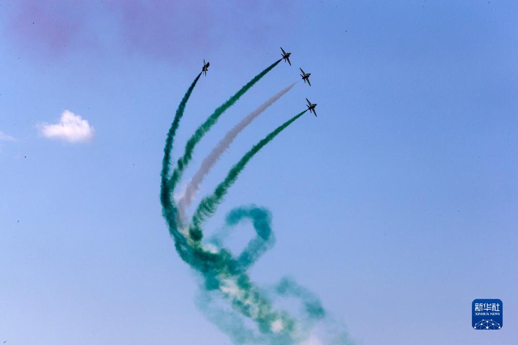 9月2日,在希臘塔納格拉空軍基地的雅典飛行周上,來(lái)自沙特阿拉伯的飛行表演隊進(jìn)行表演。