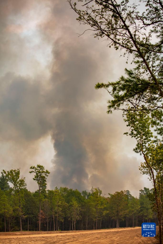 這是9月2日在美國得克薩斯州沃克縣亨茨維爾附近拍攝的煙霧。
